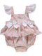 Body rosa com estampa de corações com laço no peito e gola peter-pan.