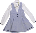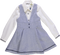 Descrição: Conjunto de blusa e saia. Blusa de manga comprida com detalhe de vivos no punho e de estampado floral na gola. Aperta com sistema de botões forrados Saia azul de peito com pregas, detalhe de vivo em cor contraste e de botões forrados.