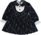 Vestido solto de menina elegante com padrão Pied de Poule preto e branco. Na frente, uma grande prega invertida com um grande laço em tecido vermelho vivo. Este tecido repete-se na gola simples em V e nos punhos elásticos. Todo forrado em algodão para maior conforto da menina e aperta atrás com um fecho de correr.