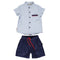 Gorro azul bebé em tecido macio e confortável, com aplicação de vivo aos quadrados azuis.