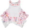 Bandolete forrada com tecido estilo Chanel rosa com flores em camadas feitas de fita de cetim e de organza rosa. Promenor de penas de lado e botão de pérola com brilhantes no centro e linda renda.