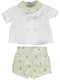 Conjunto de menino de camisa branca e calção às riscas