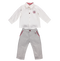 Este adorável conjunto inclui uma camisa com um laço removível e detalhes em tartan vermelho na gola, combinada com calções azul-marinho embelezados com adoráveis detalhes em tartan vermelho. Um conjunto encantador que combina estilo e conforto para o seu pequeno.