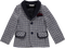 Conjunto de camisa branca com aplicação de vivo e botões decorativos na frente, aperta atrás com molas. Calções na cor cinza com cinta elástica na parte de trás. As alças apertam atrás, cruzadas, com botões simples.